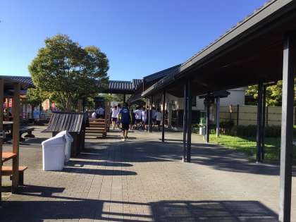 美濃加茂PAでトイレ休憩後、今から学校に出発します。4時半ごろ学校到着予定です。