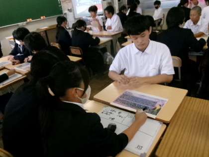 10月16日(木)第4校時、2年生が教育実習生の研究授業「新しい学問と化政文化」を受けました。あっという間の実習期間でしたね。お疲れさまでした。