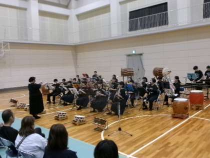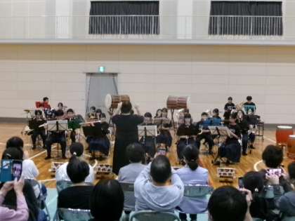 9時30分頃から体育館で、吹奏楽部が素敵な演奏を披露しました。