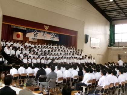 続いて、2年生の選抜合唱「YELL」と学年合唱「栄光の架橋」でした。学年一人ひとり全員が、声も心も一つにしようという姿が、大変心に残りました。