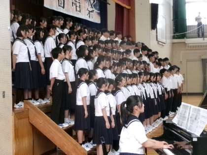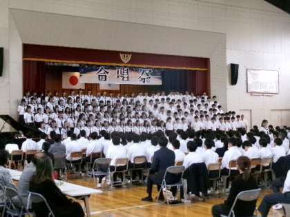 続いて3年生学年合唱「僕のこと」「愛をこめて花束を」でした。力強さと美しさの両面を感じるさすが最上級生というすばらしい合唱でした。
