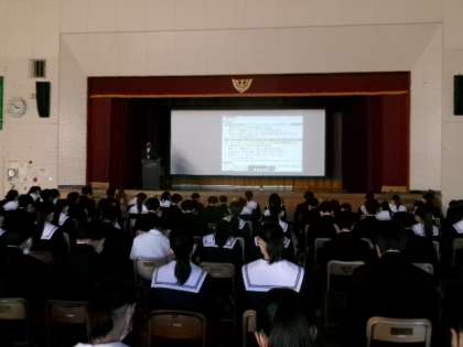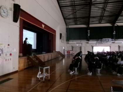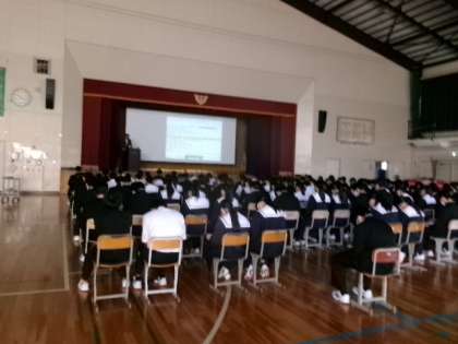 第6校時体育館で3年生が「公立高校受検説明会」を受けました。いよいよ進路選択の時期が迫ってきましたね。