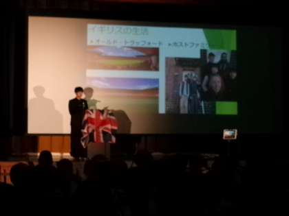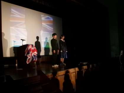 10月31日(金)第1校時3年生は体育館で、1・2年生は教室にてオンラインで、「海外派遣報告会」を行いました。イギリスもアメリカも、どちらも大変わかりやすい報告でした。