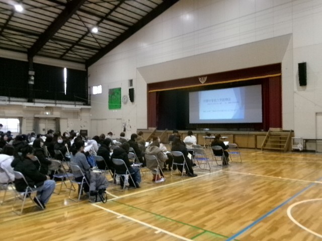 1月23日(金)午後、体育館にて令和8年度入学生徒用入学説明会を実施しました。寒い中、多くの保護者の方々のご参加、ありがとうございました。