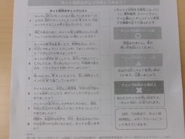 2月4日(水)今日は「ハートメディアGOODデー」、朝各教室で保健だよりを使って「ネット依存」について考えました。自分でコントロールできるようにしたいですね!