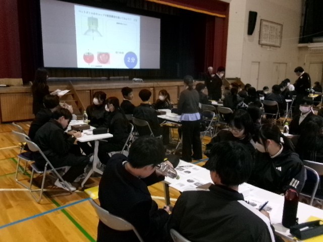2月4日(水)午前体育館にて2年生が、愛知県サイエンス実践塾出前授業「~見えないものをみる技術~」を行いました。専門家の方々の特別授業により、最先端科学技術への興味関心を高めることができました。