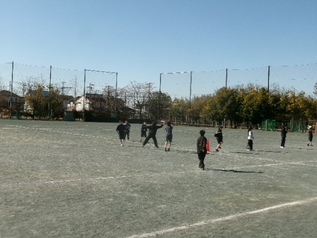 1年生が運動場で体育「アルティメット」の授業をしていました。結構ハードそうです。寒い中でも楽しく運動できるといいですね。