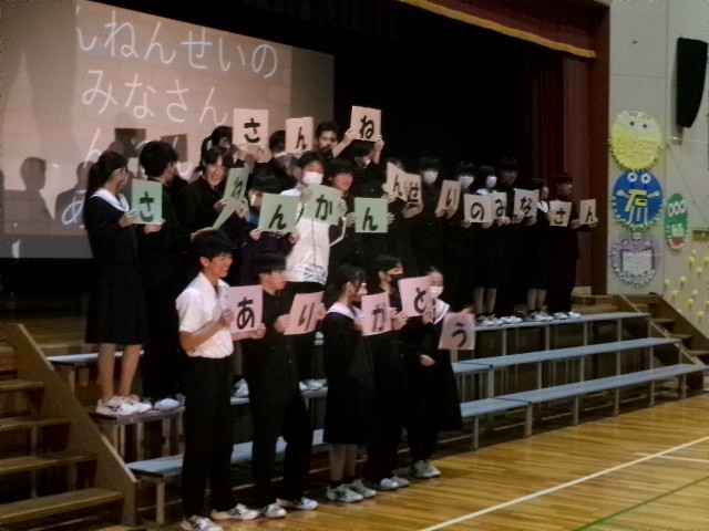 1年生が協力して、「たんぽぽ学年」に合った飾り付けを、昇降口や廊下階段教室にしました。2年生が中心となって、思い出の出来事を劇で再現したり、思い出のアルバムをプロジェクターで映したり、タブレットでのライブ中継のクイズをしたりしました。先輩への感謝の気持ちのこもった、とても心温まる素敵な会となりました。