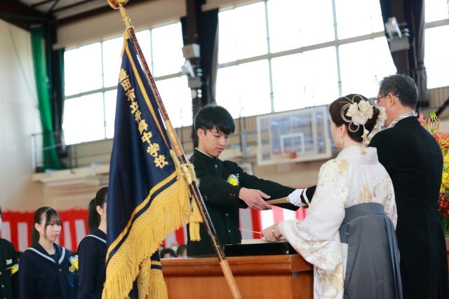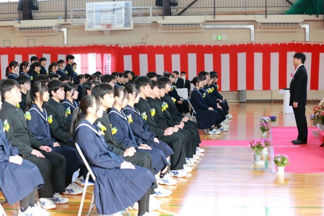 36日(金)午前本校体育館にて、令和7年度第40回卒業式を挙行いたしました。卒業生入場、卒業証書授与、校長・来賓式辞、卒業生別れの言葉、校歌合唱、卒業生退場の内容で、保護者との対面形式で行いました。卒業生の素早く揃えられた所作や、心の込もった返事や言葉、合唱により、大変厳かで且つ温かく感動的な式となりました。今までの本校教育活動へのご理解ご協力、本当にありがとうございました。