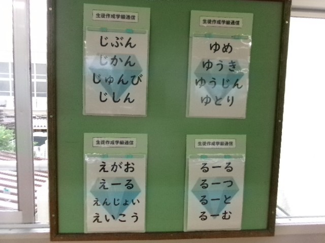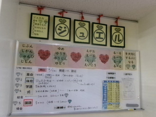 1年生の学年掲示です。学年テーマは「ジュエル」です。いろんな意味がありそうです。