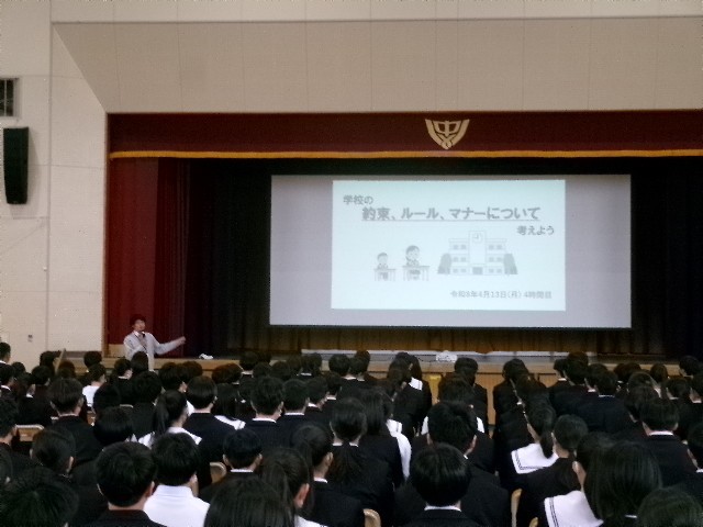 4月13日(月)第4校時体育館にて、生徒指導集会を行いました。学校全体で意識を高めていきましょう。