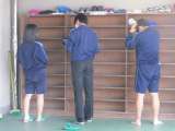 体育館の倉庫や床もきれいにします。 いつもの清掃時間にはできない場所まで 隅ま...