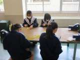 ここでは、イエローリボンを作っています。 新入生に配る数ができました。心を込め...