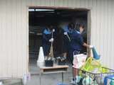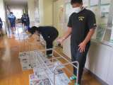 体育館周りをきれいにしています。 木工室や金工室の窓を拭いてきれいに 磨いて...