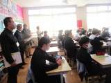 キャリア教育の学習で、入試の練習も兼ねて 「面接」を小グループで行っている学級...