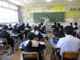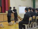 1年生の保健体育科の学習の様子です。 長縄を使って、8の字跳びを練習して い...