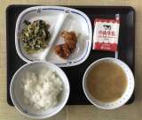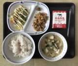 今日の献立は、ご飯、高野豆腐のうま煮、白菜のおかか和え、ニギスフライ(ウスターソ...
