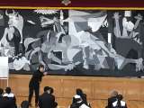 2年生の美術の授業では、ゲルニカを題材に鑑賞しました。実物大の教材を体育館で見な...