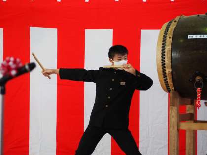 開幕の太鼓を演奏するカッコいい先輩の姿、緊張しながら入場する新入生。入学式独特の雰囲気が漂っています。