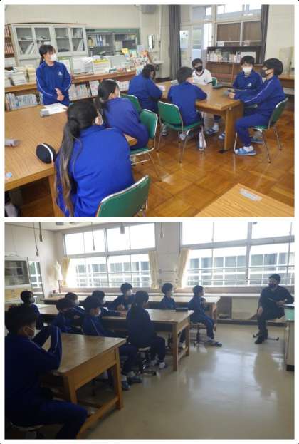 6時間目の後半に行われた通学団会の様子です。初めて3学年が一緒に活動しました。先輩から通学時に心配な危険個所を教えてもらったり、下校時の隊列などを確認しました。