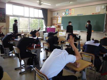 学級・学年のリーダーの選出を行っていました。立候補した生徒たちを、挙手選挙によって投票していきます。