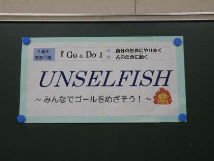 黒板には、これまでの話し合いで決定した級訓が貼り出されていました。また、リーダー会でまとめられた『凡事徹底』の具体的な行動が書き出されていました。
