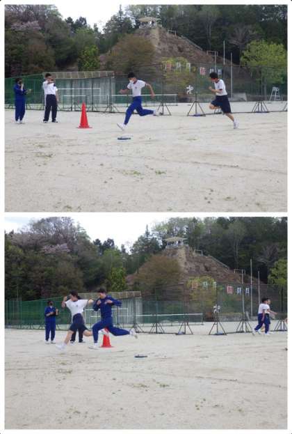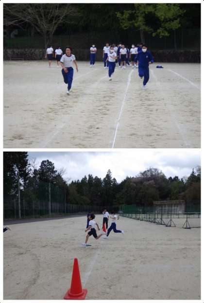 体力テストの50m走の記録測定に取り組んでいました。一斉にスタートするものは、どうしても順位やタイムを他と比較しがち。
