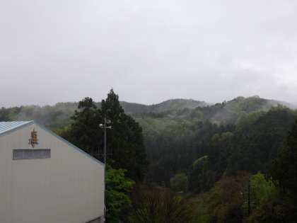 夜の雨も朝方には上がりました。3年生の教室から向かいの山を見ると、ところどころに靄(もや)がかかっています。何とも幻想的な朝の風景に心が癒されます。