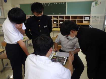 1か月後に予定されている『石中OP(=本校の体育祭)』に向けて、各団のリーダーが目標やスローガンを決めていました。かつて自分たちも先輩にしてもらったように、後輩をまとめ、楽しく絆の深まる行事にしようと、最高学年としての知恵をしぼり出します。