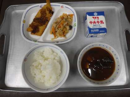 今日の献立は、じゃがいものみそ汁、たけのこまぜごはん、にぎすフライ、ごはん、牛乳 でした。 エネルギー:797kcal