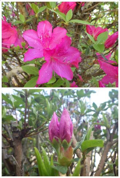 校内のあちこちでつぼみをふくらませ、中には咲き始めているツツジ。漢字では「躑躅」と書くようです。花言葉は「節度」「慎み」。また、赤のツツジには「恋の喜び」、白のツツジには「初恋」などの花言葉もあるようです。