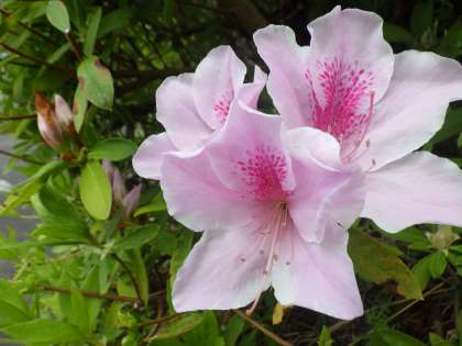 朝の「石野中の自然」でも紹介したツツジ。職員室前の土手にはきれいなピンク色の花が咲き始めました。桜が葉桜になってしまいましたが、ツツジはこれからです。