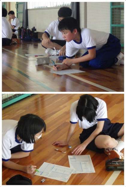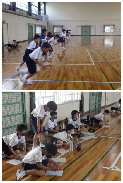 体力テストのシャトルランの記録に挑戦していました。仲間の応援を受け、自分の限界まで挑みます。応援する側も挑戦する側も真剣な様子に感心しました。