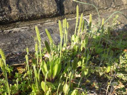 あいさつの坂道に自生するオオバコ。目にしているはずなのに、華やかさがないためか、気にしてもらえることはほとんどありません。