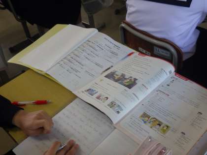 未来形について学んでいました。リピートの声が少し小さい気がしましたが、次第にいつもどおりの雰囲気になってきました