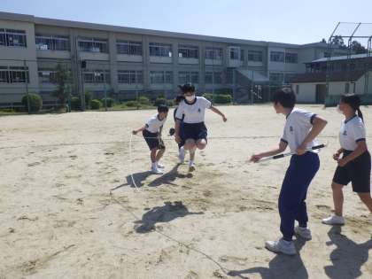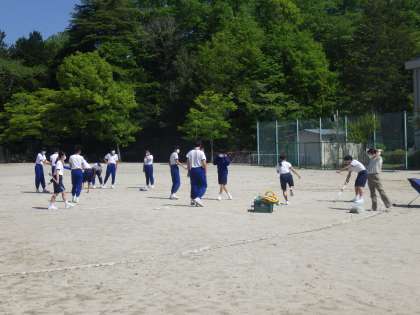 石中OPの練習に向け、道具を出したり、競技の説明や見本を見せるための練習・確認を行っていました。2つの団に縦割りで分かれるため、クラス内ではすでに戦いが始まっているようでした。