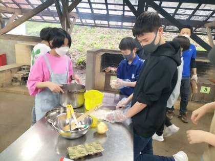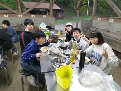 4/26 1年生宿泊学習 野外炊飯(夕食)