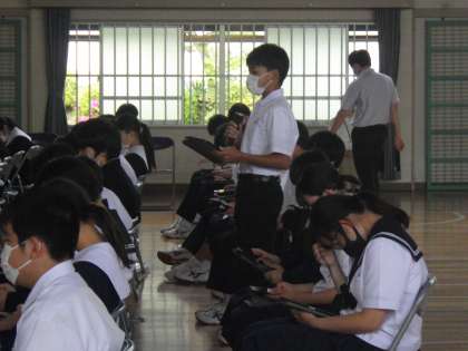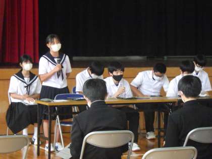 4時間目に行われた「生徒会意見交換会」の様子です。