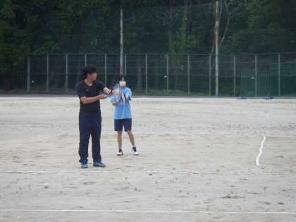 石中OPに向けての準備のため、防球ネット等が移動されています。その分ボール拾いがたいへんになりそうですが、練習の方法を工夫することでその手間を減らしていました。また、防球ネットがないことで、いつも以上に正確に打っている感じもしました。