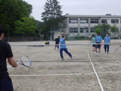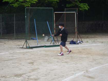 石中OPに向けての準備のため、防球ネット等が移動されています。その分ボール拾いがたいへんになりそうですが、練習の方法を工夫することでその手間を減らしていました。また、防球ネットがないことで、いつも以上に正確に打っている感じもしました。