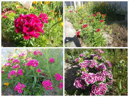 学校の花壇をはじめ、いろいろな場所で目を楽しませてくれるこの時期の草花。体育館南側の花壇で、ナデシコの花がきれいに咲いているのを見つけました。