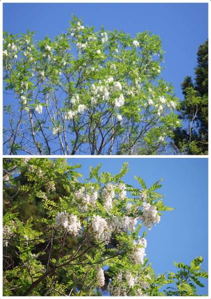 道路や公園に植えられていることの多いニセアカシア。本校では運動場の西側、メタセコイヤの近くで上の方に花を咲かせています。花言葉には、『慕情』『親睦』『友情』『優雅』『頼られる人』があります。