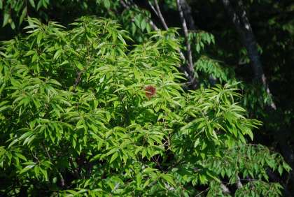 昨年度もお伝えしてきた「落ちない栗」。現在もまだその姿を確認することができます。周りが緑の葉に覆われてもなお、落ちずにいる栗。生命力の強さとともに、私たちも石中の自然に見守られている感じがします。