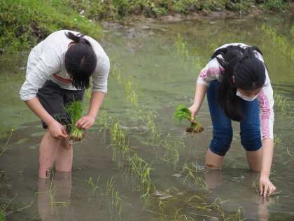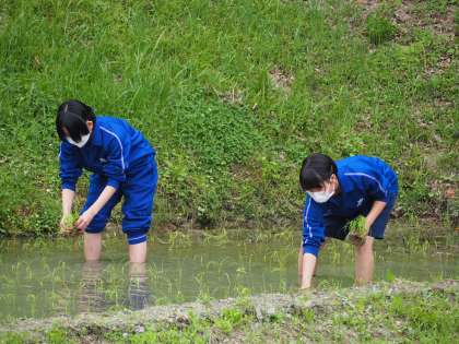 本日の1・2時間目に行われた全校田植えの様子です。