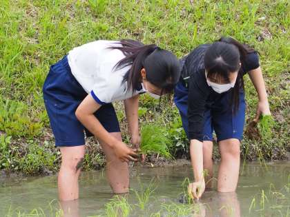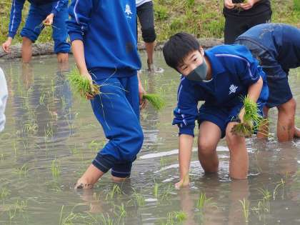 本日の1・2時間目に行われた全校田植えの様子です。