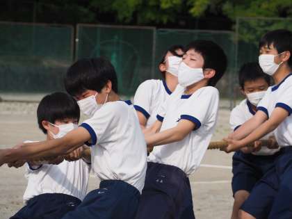 本日の午後に行われた石中OPに向けた練習・綱引きの様子です。