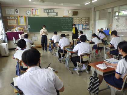 3年生の英語の授業の様子です。ALTとのコミュニケーション活動です。