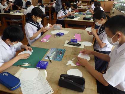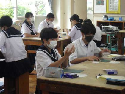 ガラス細工・サンドブラスト加工での作品づくりの第1段階の作業です。ガラス本体にマスキングシートを貼っています。納得のいく作品づくりに重要な作業過程の一つです。