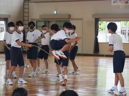 本日の午後に行われた石中OPに向けた練習・8の字跳びの様子です。