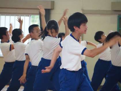 体育館での練習は声がよく響き、これがまた刺激となって練習にも熱が入ります。一回の練習でずいぶん体力を消耗するため、しっかりと水分と休憩をとって活動しています。